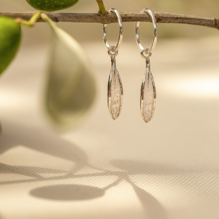 Exquisite little olive leaves that swing playfully on dainty hinged sleepers. Sleep in them, surf in them, work in them, drink cocktails in them. These gorgeous little earrings are perfect for everyday wear to add movement and lustre to your outfit. They are the sweetest piece in the series and look so pretty in both silver and gold.